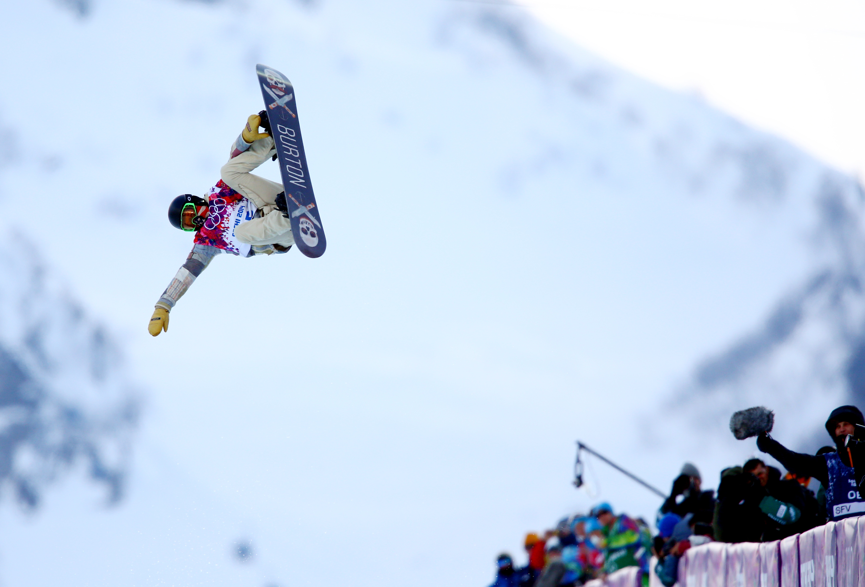 Feb 11, 2014; Krasnaya Polyana, RUSSIA; Shaun White (USA) competes during the men’s halfpipe snowboarding qualification of the Sochi 2014 Olympic Winter Games at Rosa Khutor Extreme Park. Mandatory Credit: Guy Rhodes-USA TODAY Sports